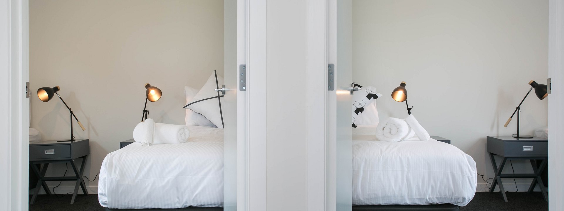 Able to sleep two people, in our studio, you have the option of two king singles or one super king bed.